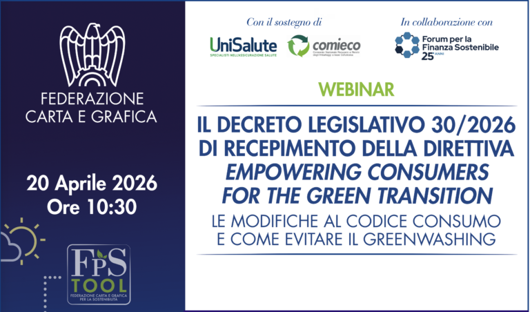 È in programma il 20 aprile prossimo il webinar “Le modifiche al Codice del Consumo e come evitare il Greenwashing”, organizzato dalla Federazione Carta e…