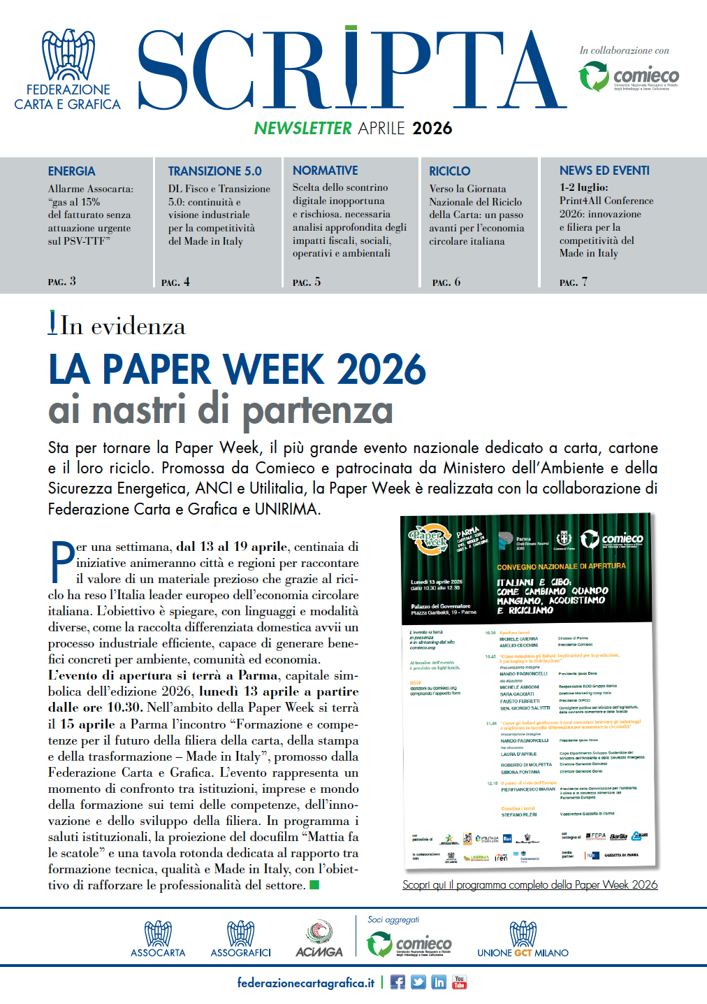 Il recente intervento del Governo sul DL Fisco rappresenta un segnale positivo per la filiera della carta, grafica e trasformazione.